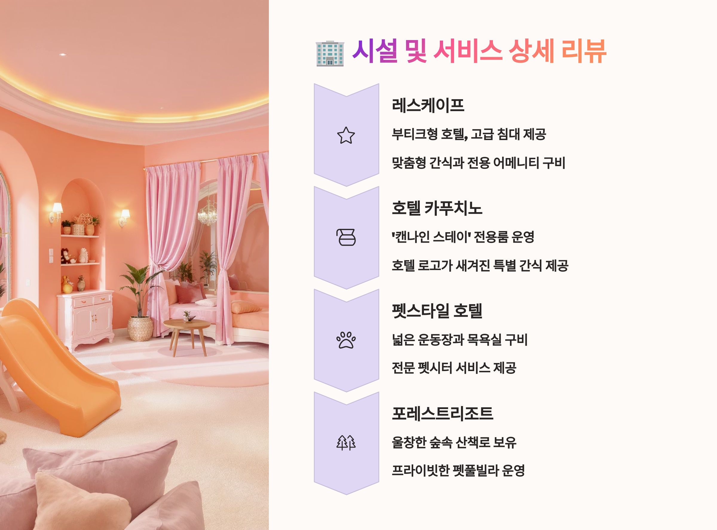강아지 호텔은 크게 세 가지 타입으로 나뉘어요. 첫 번째는 대형 프랜차이즈 호텔로, 체계적인 시스템과 전문 인력을 갖추고 있어요. 두 번째는 개인이 운영하는 소규모 호텔인데, 가족적인 분위기가 특징이에요. 세 번째는 동물병원 부설 호텔로, 의료진이 상주해서 응급상황에 대처할 수 있다는 장점이 있답니다.